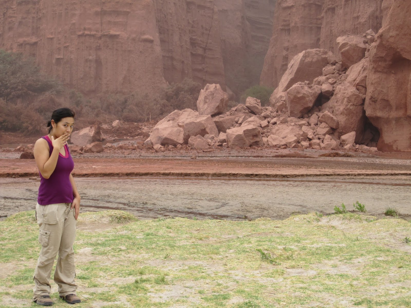 We were a group of 15 people, and all of us were frozen in our tracks. Our guide, who up until this point had been talking up the Castillos as reminiscent of the spires in Disneyland, clapped his hand over his mouth with a description that could only be described as "Oh s***." It was one of the most bizarre and surreal moments of my life, not unlike roasting a marshmallow at a live volcano. We had just witnessed the sudden, arbitrary decimation of a millions year-old landmass. If not for the imminent danger of the entire situation, it would be comical. Just 15 minutes beforehand, we were snapping pictures of cacti and posing in cave windows. Now we were looking at a huge pile of rubble, debris, and dust. I secretly thank the group of silly British travelers in our group who arrived late, because if not for them, we may have left on time and ended up a few meters closer to the cliff face.