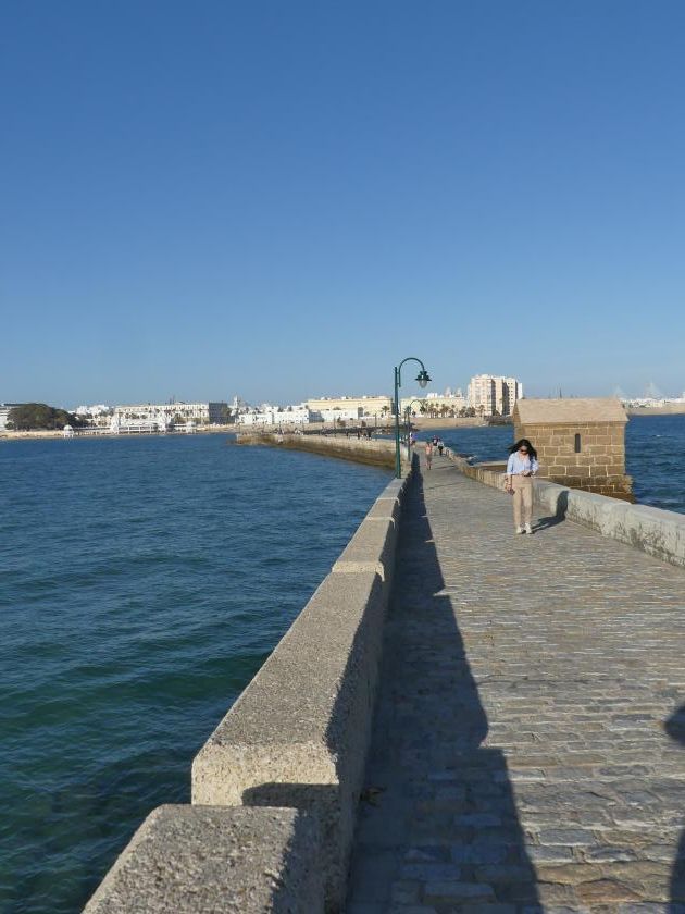 stone pathway leading to Castillo de San Sebastian that ensures the castle is accessible at high tide.
