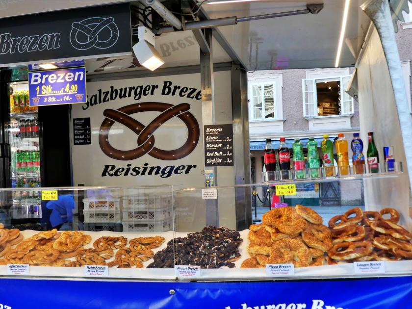 "Salzburg Brezn" refers to the popular pretzels found in Salzburg, Austria, where the term "Brezn" is a regional dialect for pretzel. These are giant soft-baked pretzels and come in many varieties.
