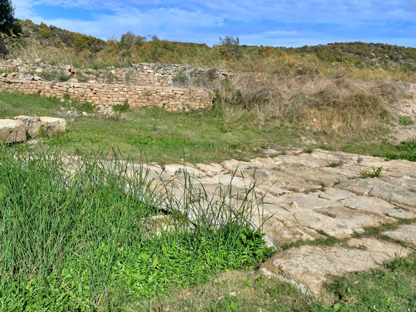 Foreground is bridge at the end of the road connecting the site to Athens, about 25 miles away