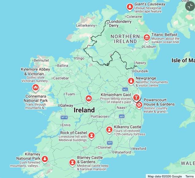 It's now close to a decade later, and I think it's time to add another chapter to the virtual run series. For this one, I'm planning to (virtually) run around the country of Ireland, focusing on the cities and tourist attractions that I will pass by along the way. As of now, I'm planning to use the Ireland tourist sites web site that is highlighted in the picture below as a primary source for the cities and sites I encounter. I also plan to share some of the experiences and memories of a trip to Ireland that my wife Jody and I were able to take with my parents shortly after we were married.